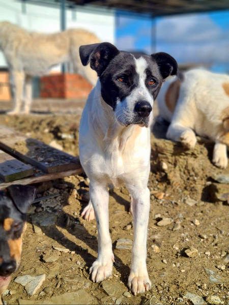Die ersten Tage hier bei uns im Tierheim verhielt sie sich ein bisschen schüchtern und reserviert, aber Schritt für Schritt hat sie sich an ihre neuen Betreuerinnen und die neue Umgebung gewöhnt. Mittlerweile kann sie sich zunehmend entspannen und genießt Streicheleinheiten mit Tere oder Josephine. Den Zwinger teilt sie sich mit Annie, einer superverschmusten und sehr menschenzugewandten Hündin. Bei ihr hat sie beobachten können, dass hier keine Gefahr droht und Menschen wohlwollend sein können, sodass sie immer mehr Vertrauen aufbauen konnte.