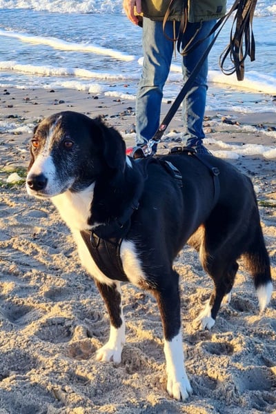 Die liebe Mona hatte vor Kurzem das große Glück, zu ihrer Pflegefamilie nach Deutschland zu reisen – und zeigt sich dort schon jetzt von ihrer allerbesten Seite. Obwohl sie eine furchtbare Geschichte mit sich bringt – dehydriert, angefahren und mit starkem Milbenbefall von der Straße aufgegabelt –, ist sie eine extrem verschmuste, aufmerksame und herzensgute Hündin, die noch immer voller Lebensfreude steckt. Ob beim Kuscheln auf der Couch oder im Kontakt mit anderen Hunden – Mona strahlt dabei einfach pure Freude aus. Sie ist bereits stubenrein, läuft entspannt an der Leine und meistert alle Alltagssituationen sehr souverän. Autofahren, Restaurantbesuche oder das Bewegen in großen Menschenmengen sind kein Problem für sie. In neuen Situationen hilft ihr besonders der Rückhalt ihrer Bezugspersonen, die ihr Sicherheit geben und ihr Selbstvertrauen stärken. Durch den Autounfall hat Mona ein unrundes Gangbild. Ein aktuelles Röntgenbild hat jedoch gezeigt, dass sowohl die Wirbelsäule, die Hüfte und die Knie in Ordnung sind als auch der rechte Oberschenkel, der durch den Unfall etwas verkürzt ist, keinen Behandlungsbedarf hat und ihr keine Probleme oder Schmerzen bereitet. Sie läuft gern und ausdauernd, hat viel Freude beim Toben, Springen und Jagen. Für ihre Zukunft wünscht sich Mona möglichst ein ebenerdiges Zuhause, zumindest ohne viele Treppen. Mona möchte mit ihren Menschen noch viele tolle Dinge lernen und gemeinsam mit ihnen wachsen.