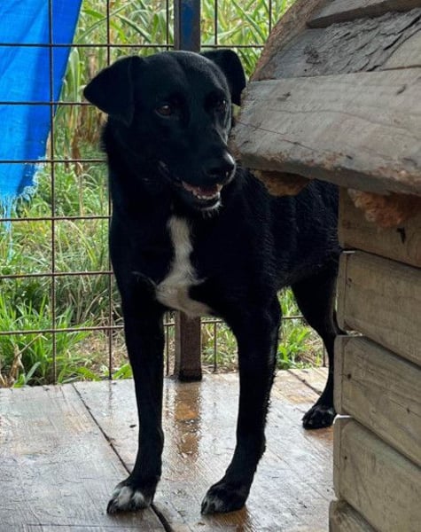Unsere Hündin mit dem schwarzen Fell und der weißen Brust ist optisch eine richtige Augenweide. Wer bereits eine Schwäche für schwarze Hunde hat, muss Pina sofort verfallen. Mit einer Größe von ca. 45 cm ist sie zusätzlich perfekt zu händeln. Trotzdem wollen wir nichts schönreden: Pina wird Arbeit sein. Sie wird Zeit und Geduld kosten, was sich am Ende aber ziemlich sicher durch Treue dir gegenüber auszahlen wird.