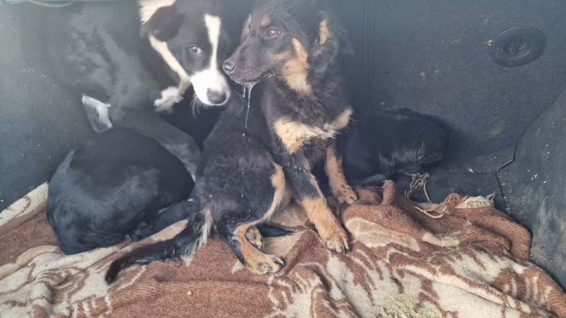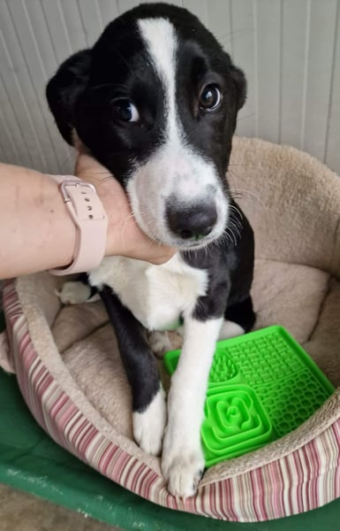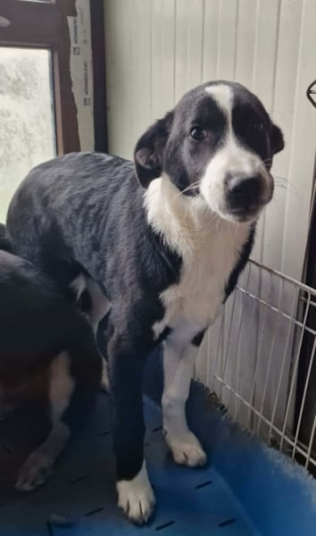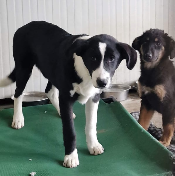 Die 4 Welpen wurden in einem Dorf ausgesetzt, weil wir voll waren, hat eine Frau sich bis zum Trapo um sie gekümmert und sie dann bei uns im Tierheim abgegeben.