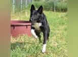 Magnus läuft gut an der Leine, lernt gut und ist auch wissbegierig. Magnus hat eine angeborene Stummelrute (stark verkürzte Rute).