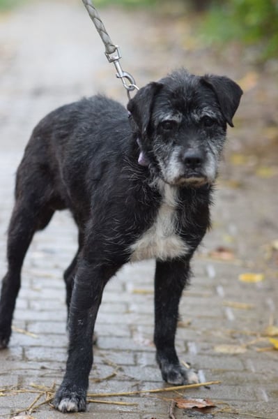 Rüde Opa Kalmann ist ein Mischling und gehört zu unseren Senioren. Obwohl in seinem Pass als Geburtsdatum November 2013 steht, schätzen wir ihn etwas älter ein. Mit einer Größe von 48 cm kam er nach einem Autounfall, wobei er viel Glück im Unglück hatte, zu uns. Opa Kalmann hatte keine schlimmen Verletzungen.