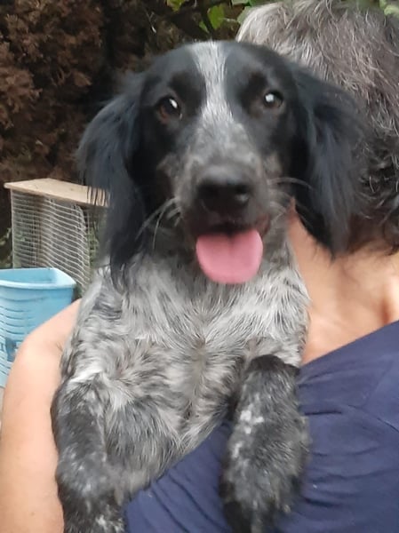 Shanti ist ein schöne Hündin mit ihrer interessanten schwarz weiß gefleckten Fellfärbung.