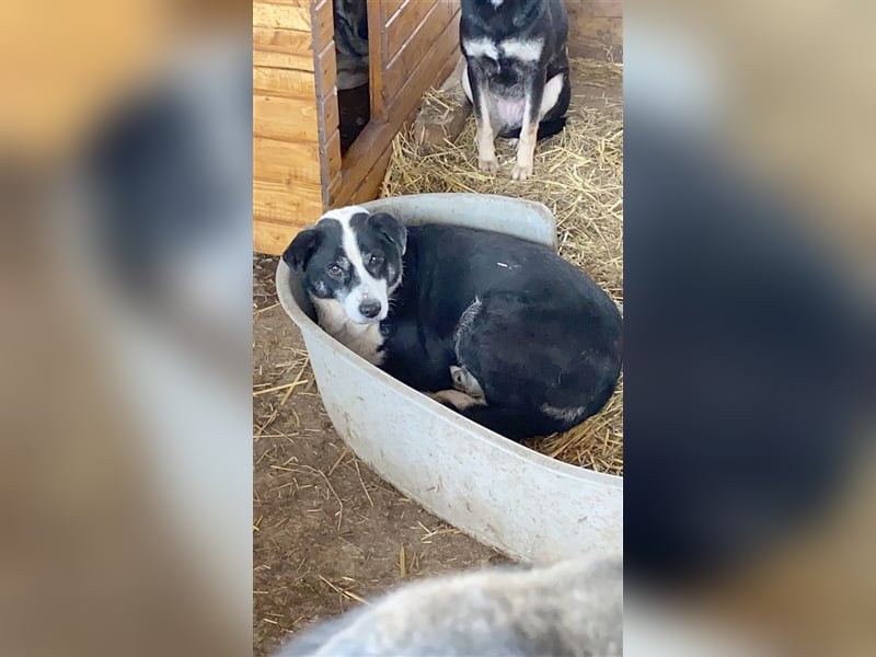 Uro ist souverän und freundlich mit allen Hunden! Bei Menschen ist er etwas schüchtern, kein Wunder, nach so vielen Jahren im Käfig!