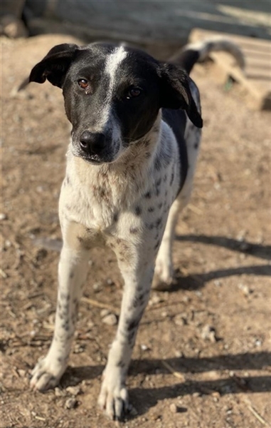 Unsere hübsche Janita hat ein schwarz-weißes Fellkleid mit großen Schlappohren und zuckersüßen Pünktchen an den Beinen. Im städtischen Tierheim Serres lebt sie derzeit mit weiteren Hunden ihres Alters zusammen. Hier ist sie sehr neugierig, freundlich und verspielt. Gegenüber Menschen zeigt sie sich zunächst noch zurückhaltend, weshalb ein wenig Geduld und eine extra große Portion Liebe unabdingbar sind. Für Janita wünschen wir uns sehr, dass sie hoffentlich bald ihre passenden Menschen für immer findet und behutsam an ein Leben außerhalb des Tierheims herangeführt wird, damit sie sich zu einer tollen Begleiterin auf vier Pfoten entwickeln kann.