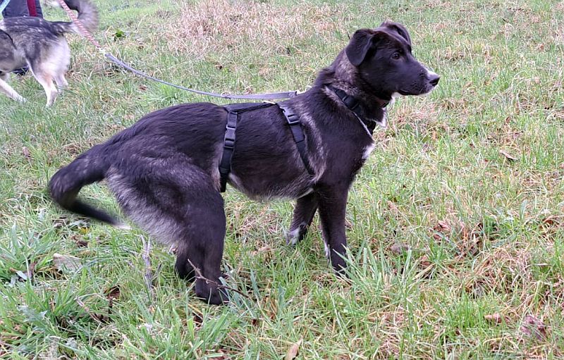 Alina warv anfänglich sehr schüchtern. Inzwischen ist sie richtig aufgetaut und nun eine sehr liebe und freundliche junge Hündin. Aufgeschlossen aber vorsichtig kommt sie fremden Menschen entgegen.