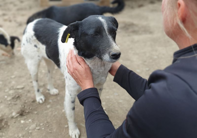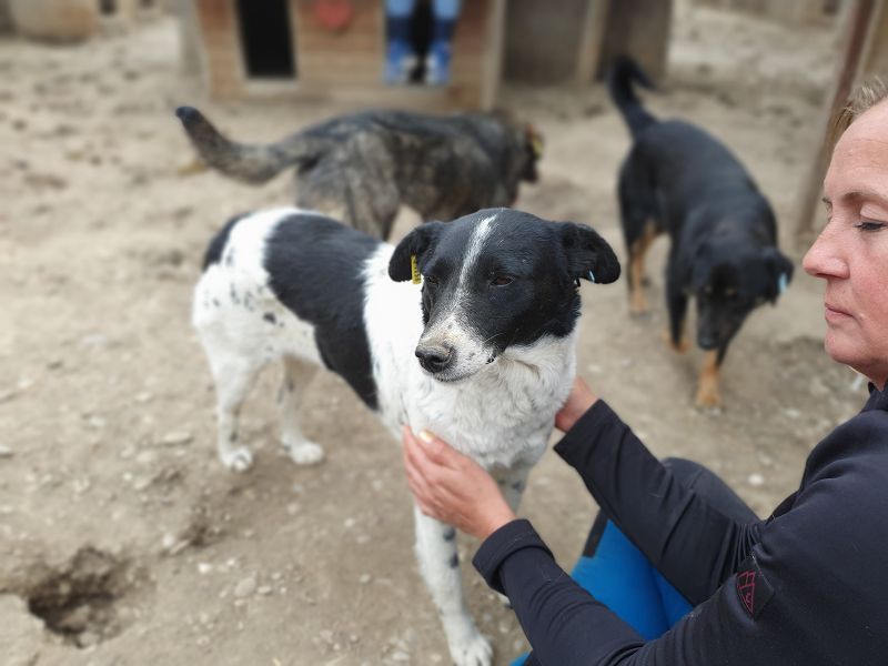 Angel haben wir als eine nette, ruhigere Hündin kennengelernt. Sie nahm die Leckerchen gerne entgegen und war froh über unseren Besuch in ihrem Zwinger, den sie sich mit weiteren Hunden teilt. Sie ist sehr liebebedürftig, kuschelte sofort, blieb bei uns stehen und genoss einfach die Zuwendung. Dann wollte sie uns am liebsten nicht mehr teilen und reagierte etwas eifersüchtig, aber nicht aggressiv. Sie ist einfach verzweifelt auf der Suche nach Zuneigung und Liebe und diese Momente sind dort so selten, daher kann man ihre Reaktion auch verstehen, denn sie ist grundsätzlich gut verträglich mit allen anderen Hunden in ihrem Zwinger. Ihre oberen Schneidezähne sind zerstört und fehlen teilweise komplett, aber beim Fressen konnte man bisher keine Probleme für sie feststellen. Angel ist ein Goldschatz und wir suchen nun nach ihrem Zuhause, welches sie am liebsten als Einzelprinzessin bewohnen sollte.