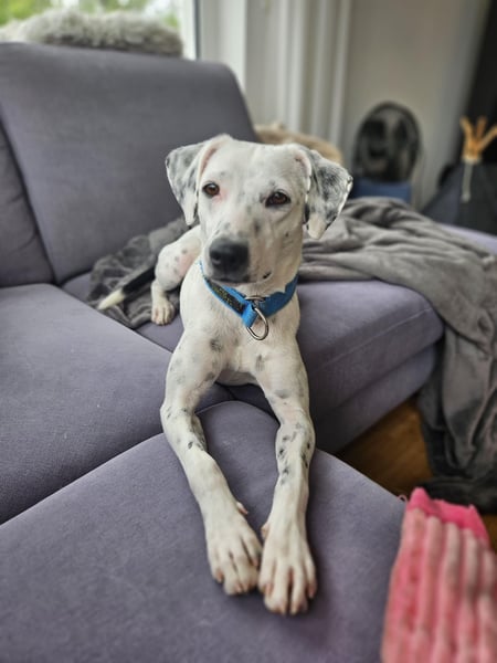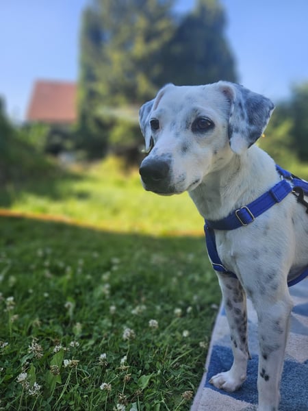 Mercy ist taub, doch das beeinträchtigt die hübsche Junghündin im täglichen Leben kaum.