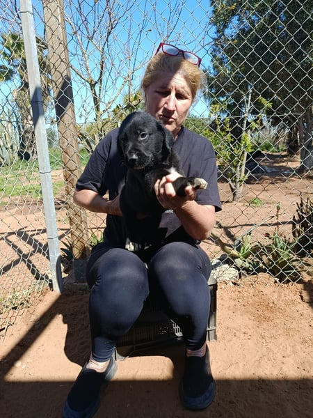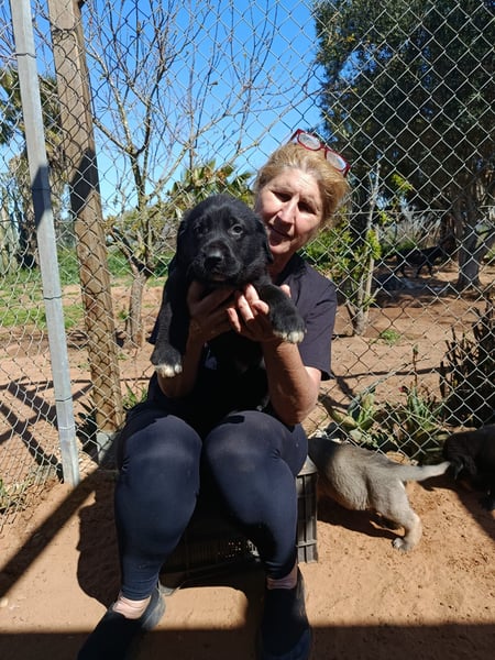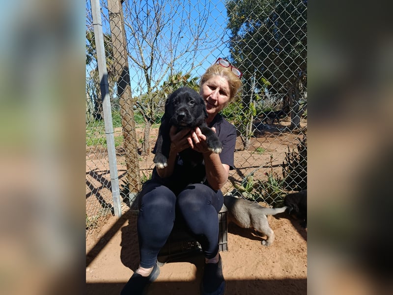 Die schwarze Irisch-Wolfs-Mix-Hündin Mara konnten wir aus der Perrera ResurJA in Linares herausbringen. Nach Ankunft im Süden im sicheren Refugio stellte sich heraus, dass trotz abgemagertem und schlanken Körper die Trächtigkeit weit voran geschritten war.