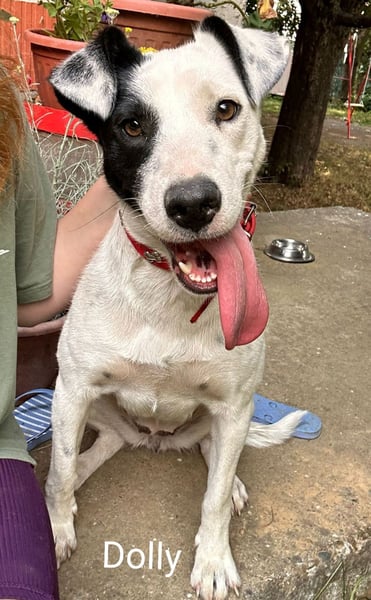 Dolly ist eine sehr freundliche und unkomplizierte Hündin. Sie kennt das Leben im Haus und auch Kinder. Mit Artgenossen hat sie keine Probleme – sie wird insgesamt als unkompliziertes Hundemädchen beschrieben.