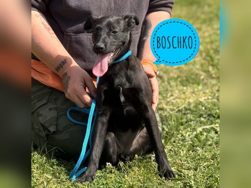 Boschko (Passname: Boško) ist ein Bub, laut Tierarztschätzung ca. 5,5 Monate alt (geb. 01.11.2025) geboren. Aktuell wiegt er etwa 5,4 kg und ist rund 38 cm groß. Vermutet wird ein absoluter Mischling.