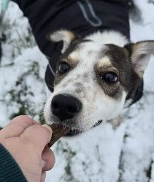 Joschi bekommt ausschließlich Pferd als Futter, was er gut verträgt. Seine zukünftigen Menschen sollten daher bereit sein, Pflege, Blasenmanagement und gelegentlichen Durchfall souverän in ihren Alltag zu integrieren.