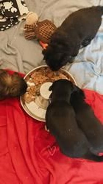 Unsere vier kleinen Wunderwelpen waren am 14-03-2025 einfach da, ganz ohne Vorwarnung lagen sie als Geschenk an unsere bewährte Pflegestelle dort. Es handelt sich um drei Jungs und ein Mädchen, alle hatten um die 200 Gramm Anfangsgewicht, inzwischen nach rund vier Wochen sind sie bei 1,6 bis 2,0 Kilo, jetzt nach acht Wochen wiegen sie zwischen 2,2 bis 3,1 Kilo.