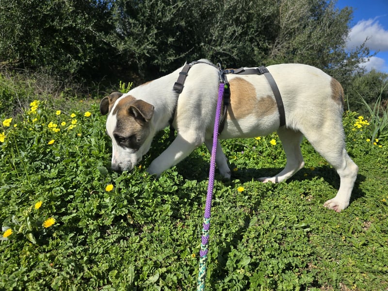 Nicoletta ist ein kleiner Wirbelwind. Ihre Wunden sind verheilt und es sieht so aus, als wolle sie die Zeit, wo sie aufgrund der OP im Käfig sitzen musste, nachholen. Unbekümmert geht sie auf Menschen zu, möchte spielen, toben, schmusen. Dabei weiß sie nicht, was sie zuerst machen soll.