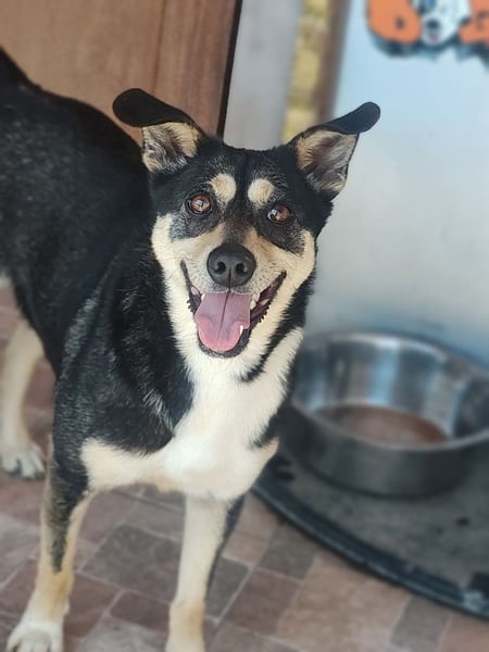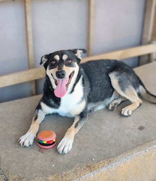 Erens erster Tag im Tierheim war im Mai 2024. Aufgefallen ist Eren auf einem Feld und sie war nicht alleine. Zu diesem Zeitpunkt war sie eine frischgebackene Hundemama und hatte einen ca. zwei Tage alten Welpen. Leider wissen wir nicht, ob Eren ihren kleinen Welpen auf dem Feld auf die Welt brachte, oder ob man sich ihr einfach entledigt hatte und sich selbst überließ.