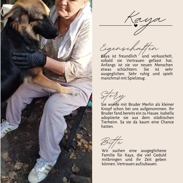 Wir freuen uns, wenn KAYA bald eine liebevolle Familie findet, die ihr die Wärme und Geborgenheit schenkt, die sie verdient.