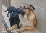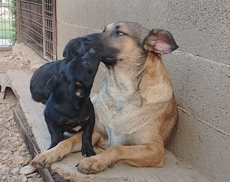 Besonderheiten: der Rüde Lino ist super lieb zu Menschen und hat evtl. mit ihnen bisher zusammen gewohnt. Mit anderen Hunden versteht er sich super – sogar die Welpen lässt er auf sich herumturnen; Lino ist Leishmaniose positiv und bekommt täglich Allopurinol