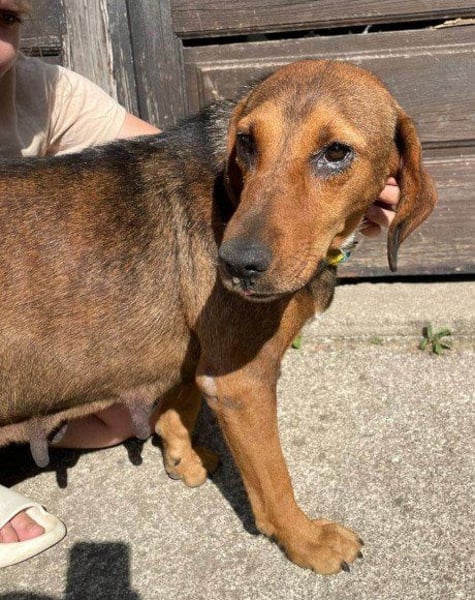 Wir erhielten einen Hilferuf einer befreundeten Tierschutzorganisation: Eine Hundemama und ihre neun Welpen brauchten dringend Hilfe. Anwohner drohten ihnen, etwas anzutun. Unsere Tierschützerin erklärte sich bereit, den langen Weg auf sich zu nehmen und die Hündin und ihre Welpen zu sichern. Es war wohl ihr dritter Wurf – aufgrund der hängenden Zitzen liegt die Vermutung nahe, dass es sogar noch mehr waren – und seit Monaten, wenn nicht sogar Jahren, hatte man versucht, sie in Sicherheit zu bringen. Vor Ort angekommen, lief die Hündin zunächst weg. Mithilfe von zwei befreundeten Tierschützern gelang es schließlich, die Welpen in eine Box zu legen und die Mutter reinzulocken. Leider wurden nur noch sieben der Welpen gefunden – die beiden anderen sind sehr wahrscheinlich verstorben. Auch eines der Welpenmädchen hat es nicht geschafft – sie war die kleinste und zierlichste, vermutlich waren ihre Organe nicht ausreichend ausgebildet, so dass sie gar nicht zu Kräften kommen konnte. Die kleine Familie wurde bestmöglich versorgt, und die Welpen haben zusätzlich Milch per Hand gefüttert bekommen.