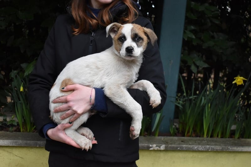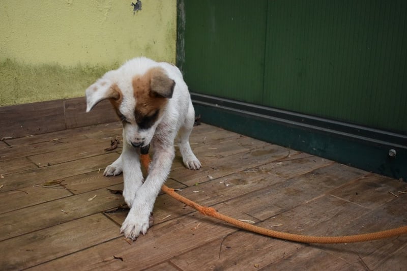Sie fühlen sich geblendet? – Nein, liebe Leser, dieses Licht kommt nicht von seinem hellen Fell. Es kommt von ihm, tief aus seinem kleinen Welpenherz. Elenio ist noch so klein, vermutlich denkt er, das hier ist sicher nur ein Zwischenstopp. Ein verdammt blöder. – Im Grunde hat er da recht, zumindest wäre es nicht ganz so schlimm, wenn die Hunde nur kurzzeitig dort bleiben würden. Doch manche bleiben so lang, dass ihre kleine Flamme der Hoffnung von der Angst ausgepustet wird. Und manches Vertrauen. So wird es auch bei Elenio sein. Er ist noch nicht lange im Hundelager, er kam am 31. Januar mit seiner Schwester Eloria dort an. Leider hatte er auch eine Flohdermatitis, von der Kinn, Hals und Pfoten betroffen waren. Aber er erholt sich schon davon.