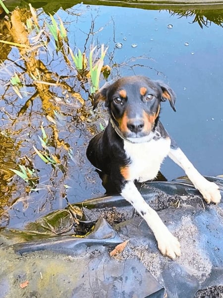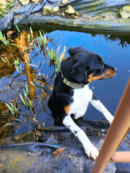 Typisch Junghund bringt sie dabei ordentlich Schwung ins Leben: verspielt, fröhlich und manchmal ein bisschen albern sorgt sie regelmäßig für gute Laune. Besonders glücklich ist sie, wenn sie draußen unterwegs sein kann – und Wasser hat es ihr ganz besonders angetan. Ein Teich ist für Zelia einfach unwiderstehlich.