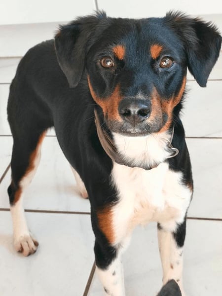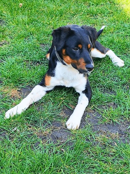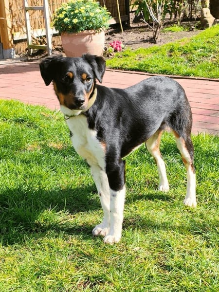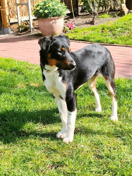 Auch draußen wird Zelia immer sicherer. Spaziergänge meistert sie schon richtig toll, läuft schön an der Leine und orientiert sich gut. Ihr Rückruf funktioniert bereits erstaunlich zuverlässig, was zeigt, wie aufmerksam und lernfreudig sie ist. Überhaupt macht es ihr Spaß, Neues zu lernen – die ersten Grundkommandos wie „Sitz“ übt sie fleißig und mit wachsender Begeisterung.