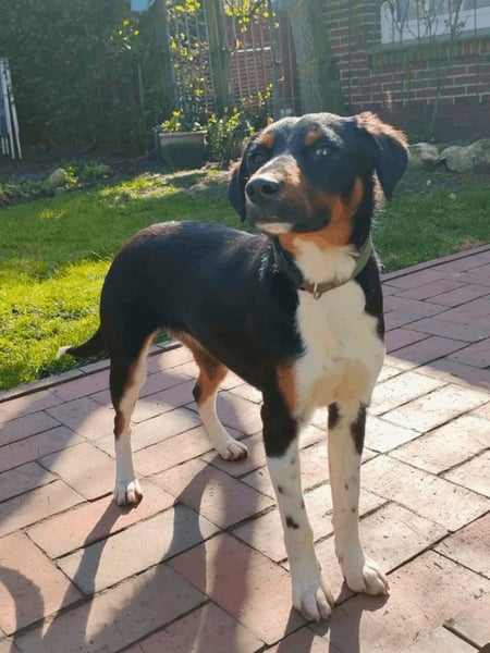 Noch immer begegnet sie Neuem mit einem kurzen Innehalten, einem wachsamen Blick und dieser typischen „Ich schau mir das erst mal an“-Art. Doch ihre Neugier gewinnt inzwischen fast immer. Hat sie erst verstanden, dass keine Gefahr droht, taut sie schnell auf und zeigt, wie viel Lebensfreude in ihr steckt. Bei ihrer Bezugsperson ist davon längst nichts mehr zu spüren – hier genießt sie Nähe, holt sich ganz selbstverständlich ihre Streicheleinheiten ab und zeigt, wie sehr sie Vertrauen fassen kann.