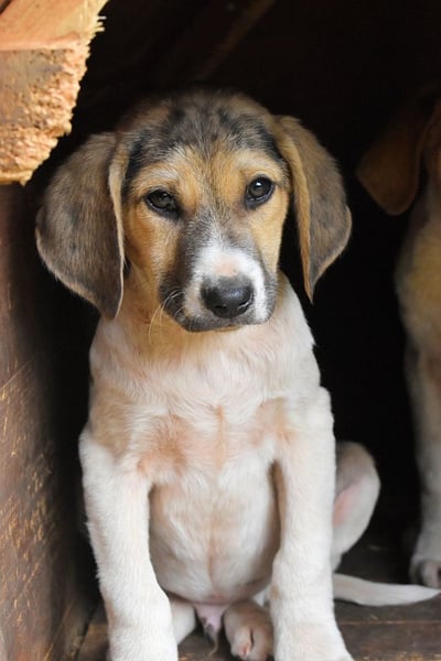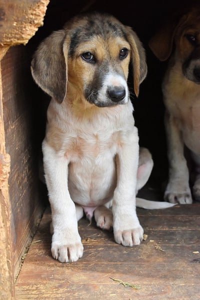 Jetzt sitzen wir hier, eingesperrt und ohne Mama. Zum Glück durften wir aber zusammenbleiben. Manchmal spielen wir ein bisschen. Mama hat immer gesagt, Spielen sei wichtig, damit man sich gut entwickelt. Also spielen wir. Und dann kamen eines Tages Menschen, die ganz anders waren. Nicht so grob, wie die Menschen, die uns eingesperrt haben. Sie haben uns vorsichtig angeschaut und leise mit uns gesprochen. Sie haben gesagt, dass sie Mama zwar nicht finden können, aber sie wollen uns helfen, hier wieder rauszukommen. Das geht aber nur, wenn wir ein Zuhause finden. Und dafür, so haben sie gesagt, müssen wir uns bewerben. Auweia… wir sind doch noch so klein. Wie soll man denn als kleines Hundekind wissen, wie das geht? Warum wissen diese Tierschützer das denn nicht.“