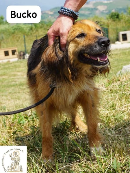 Trotz allem hat Bucko sein Vertrauen nicht verloren. Bucko ist ein junger Hund voller Lebenslust, der nur eine kurze Zeit braucht, um neue Menschen einzuschätzen. Dann taut er auf, genießt Streicheleinheiten und kuschelt sich voller Hingabe an – wer könnte es ihm verdenken?