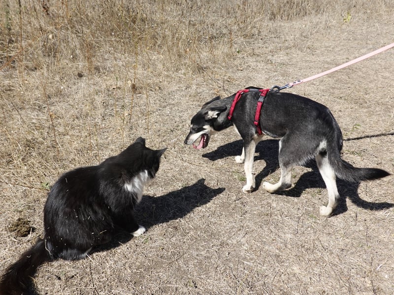 In der Interaktion mit anderen Hunden zeigt sich Anouk sehr sozial und orientiert sich gerne an ihnen. Auch Katzen begegnet sie freundlich – wenn auch manchmal noch etwas stürmisch, was mit liebevoller Anleitung und ein wenig Training jedoch gut lenkbar sein dürfte.