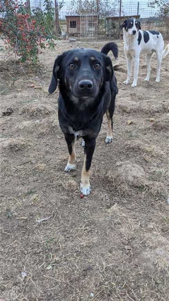 Negruta ist verträglich mit Artgenossen, sie bewegt sich frei auf dem Gelände des Tierheimes mit Hunden jeder Größe und jeden Alters zusammen.