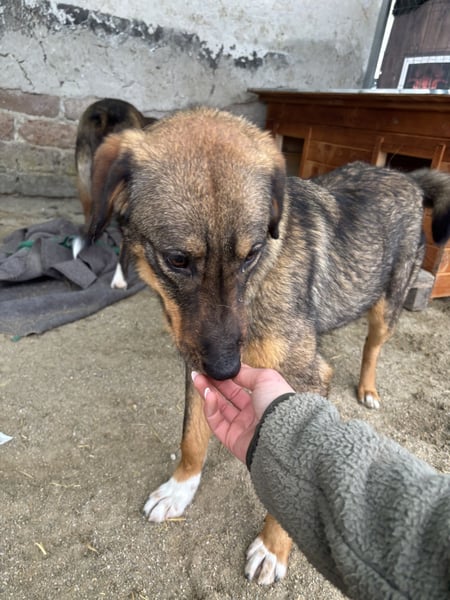 Leckerli-Fan Amy gehört zu den über 200 Hunden, die im kleinen rumänischen Ort Finta Mare von Tierschützerin Floriela gerettet wurden.