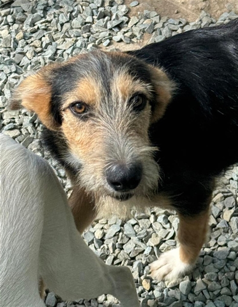 Auf dem Rückweg vom Tierarzt zum Shelter entdeckte Tierschützerin Aura einen kleinen Welpen am Straßenrand.