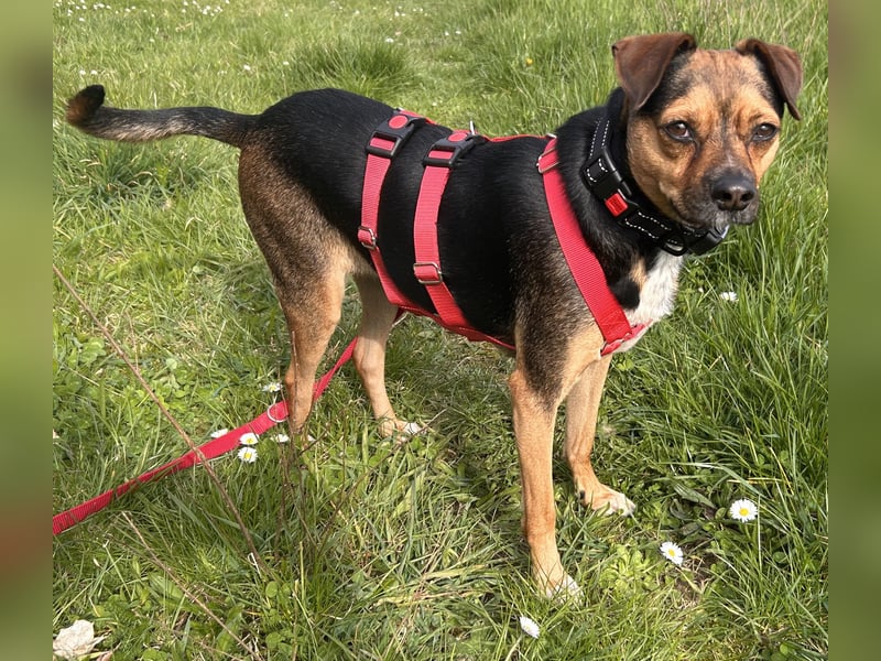 Im Alltag zeigt sie sich angenehm unkompliziert und lernbereit. Sie ist stubenrein, kennt die Grundkommandos, fährt entspannt im Auto mit und läuft gut an der Leine. Dabei orientiert sie sich stark an ihren Menschen und zeigt keine Tendenz wegzulaufen. Leckerlis motivieren sie zusätzlich, und klare Strukturen geben ihr Sicherheit.