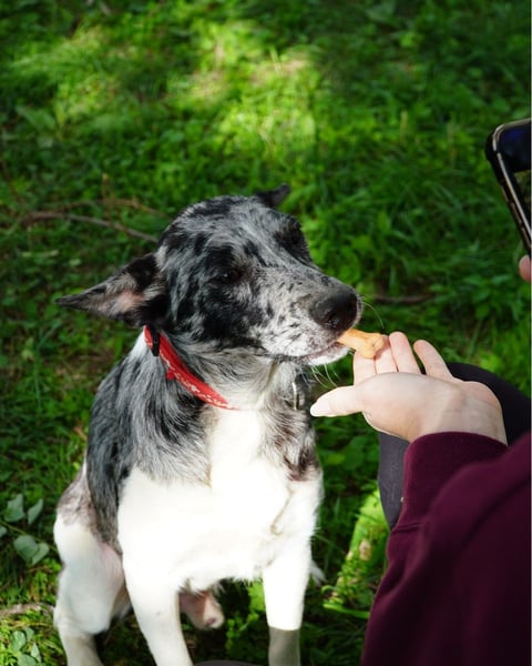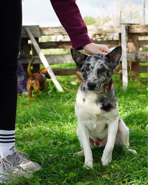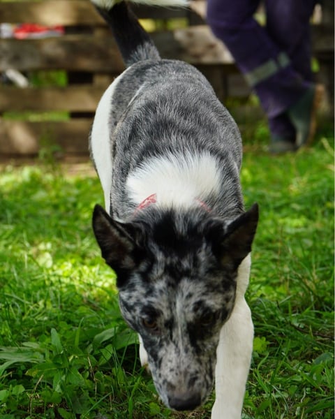 Sajo stammt – wie Simon und die anderen „S-Hunde“ – aus einem Messihaus, in dem viele Tiere auf engem Raum lebten, ohne Liebe, Pflege oder Aufmerksamkeit.