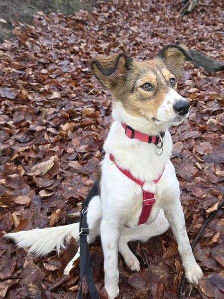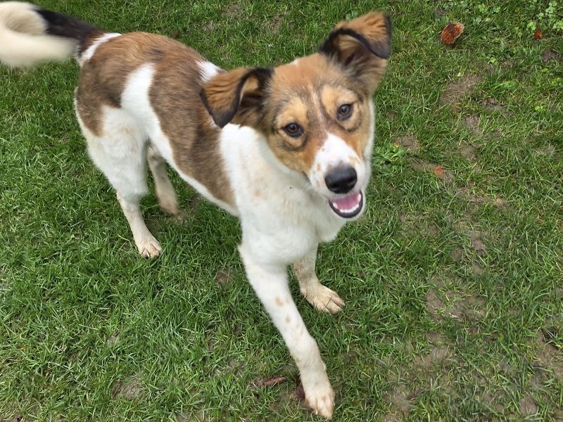 Sie ist ein typischer Junghund: neugierig, verspielt und dabei trotzdem angenehm ausgeglichen. Leckerchen nimmt sie gerne an, und ihr Blick verrät, wie sehr sie sich nach einem festen Platz im Leben sehnt.