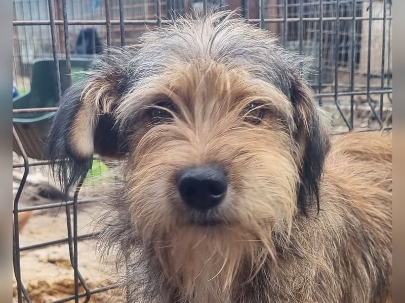 ♥SOUL♥ niedliche, anfangs noch vorsichtige Hündin mit dem zauberhaft getigerten Struppifell 47 cm