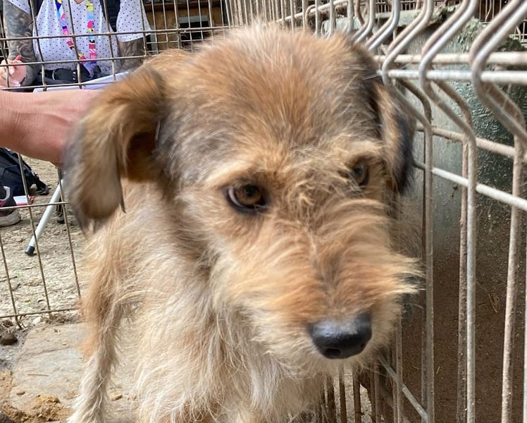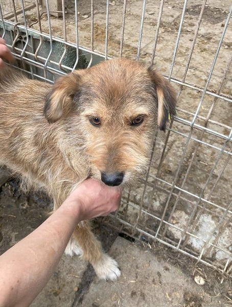 Dieser niedliche Hund mit dem zauberhaft getigerten Struppifell war bei unserem Besuch im Tierheim freundlich und interessiert. Sie hat uns neugierig beobachtet, war jedoch zu skeptisch, um sich näher heranzutrauen. Man merkte ihr an, dass sie den Kontakt schon gerne wollen würde. Als wir sie zu ihrem Glück gezwungen haben, ließ sie sich ein wenig streicheln, konnte es jedoch noch nicht recht genießen und nahm auch keine Leckerchen von uns an. So ganz geheuer war ihr die Situation noch nicht. In einer ruhigeren Umgebung mit etwas mehr Zeit würde sie sicherlich auftauen. Wir könnten uns sehr gut vorstellen, dass ihr ein souveräner Ersthund an der Seite eine große Hilfe bei der Eingewöhnung wäre.