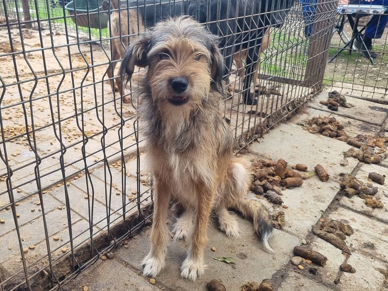 Dieser niedliche Hund mit dem zauberhaft getigerten Struppifell war bei unserem Besuch im Tierheim freundlich und interessiert. Sie hat uns neugierig beobachtet, war jedoch zu skeptisch, um sich näher heranzutrauen. Man merkte ihr an, dass sie den Kontakt schon gerne wollen würde. Als wir sie zu ihrem Glück gezwungen haben, ließ sie sich ein wenig streicheln, konnte es jedoch noch nicht recht genießen und nahm auch keine Leckerchen von uns an. So ganz geheuer war ihr die Situation noch nicht. In einer ruhigeren Umgebung mit etwas mehr Zeit würde sie sicherlich auftauen. Wir könnten uns sehr gut vorstellen, dass ihr ein souveräner Ersthund an der Seite eine große Hilfe bei der Eingewöhnung wäre.
