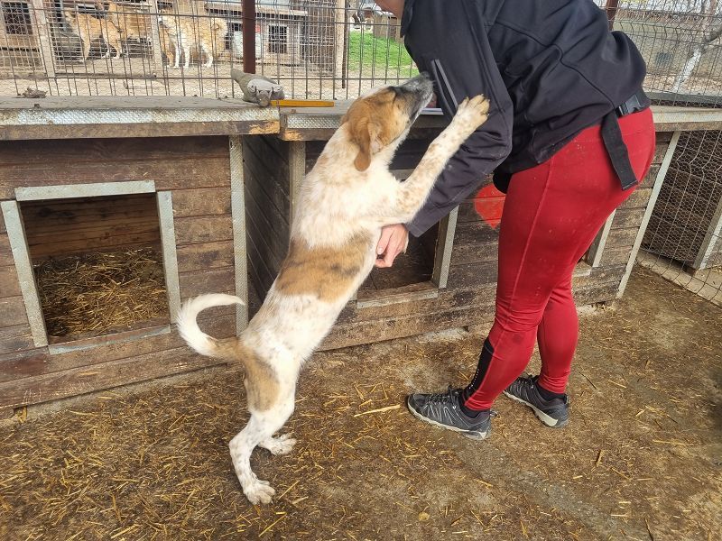 Mirco ist ein sehr aufgeschlossener, junger Rüde. Er freute sich riesig über uns und kam immer wieder aktiv auf uns zu und suchte unsere Nähe. Junghundtypisch ist er noch sehr verspielt, neugierig, verträglich und freundlich. Mirco wird vermutlich mittelgroß-groß werden. Mit seinen lustigen Dalmatinerflecken ist er auf jeden Fall ein echter Hingucker.
