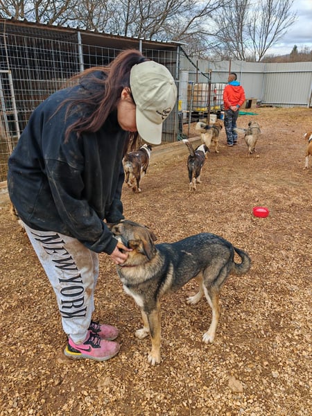 Arthur zeigt im Shelter keine Ressourvenverteidung, auch nicht wenn einzelne Leckerlies oder Knochen verteilt werden. Bei Spielzeug genauso wenig. Und gerne lässt er sich auch gemeinsam mit einem anderen Hund streicheln.