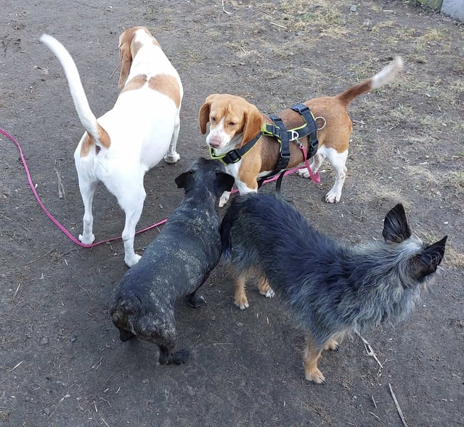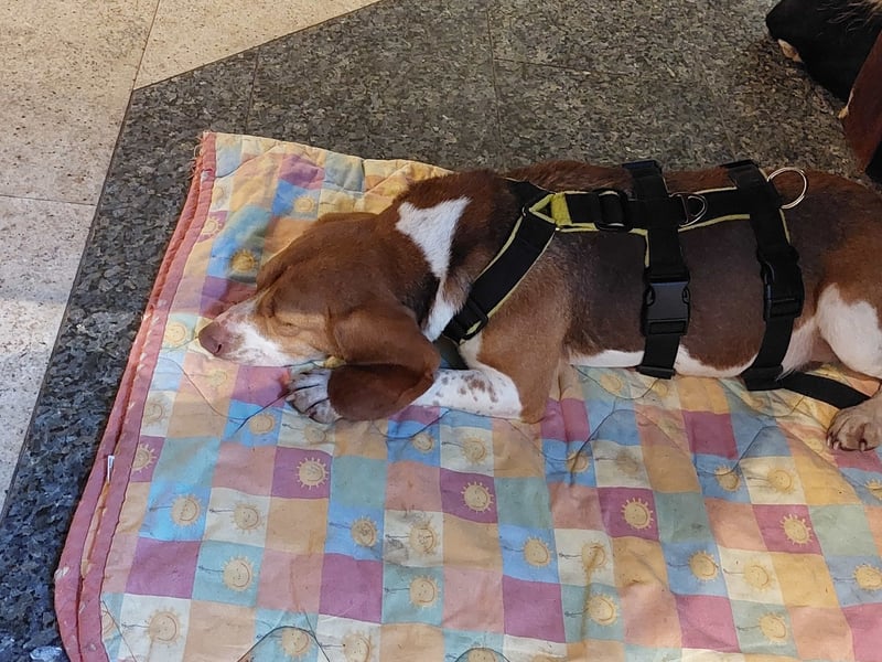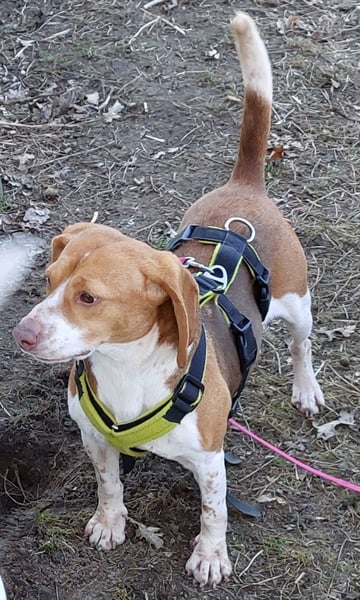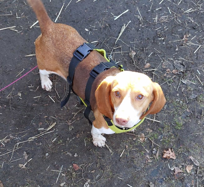 Beagle-Mix Dana aus Spanien kam Ende Februar in Deutschland an und wurde leider zum Rückläufer. Danke an Katrin aus unserem Team, die Dana dann sofort als Pflegehund bei sich aufgenommen hat.