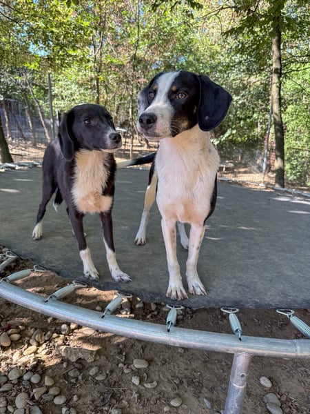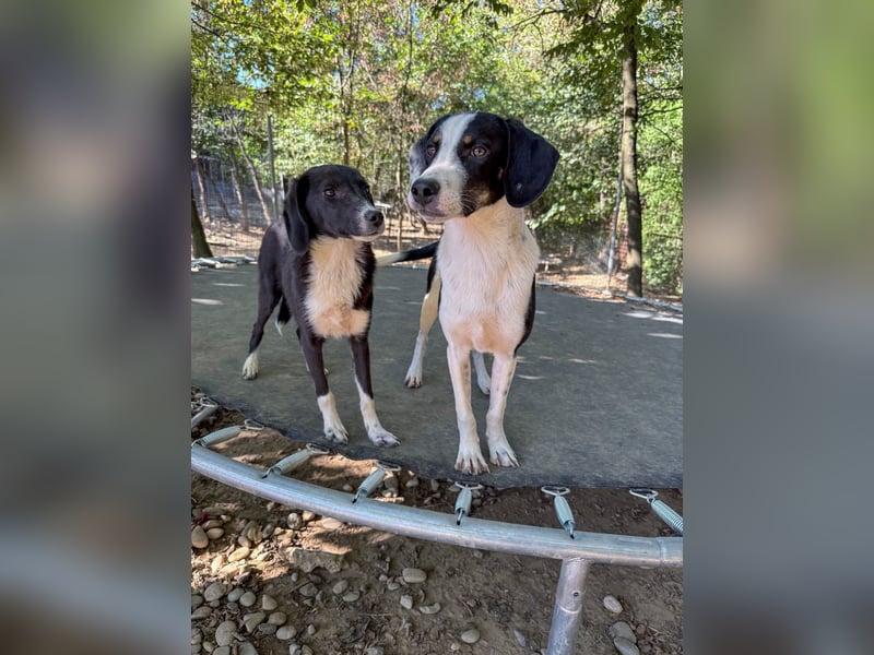 Im Tierheim durften wir unbeschwert aufwachsen und genießen jeden einzelnen Tag sehr! Wie es sich für kleine Racker in unserem Alter gehört, sind wir sehr verspielt und lustig. Wir halten hier alle Menschen und Hunde ordentlich auf Trab und toben umher, als gäbe es kein Morgen! Vor allem ich bin immer ganz vorne mit dabei und lasse mir keine Chance auf fröhliche Späße und wilde Spielerunden entgehen. Das ist meine Spezialität! ☺️