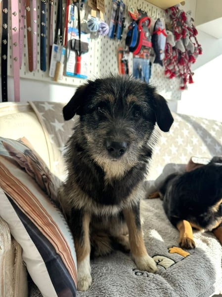 Die süße Marimar wurde Ende November 2025 von einem befreundeten Tierschützer, zusammen mit ihren Hunde-Freundinnen Anabell und Pusha, aus einem Industriegebiet bei Onesti (Rumänien) gerettet. Der nette Mann entdeckte die drei Hunde während seiner routinemäßigen Fütterung der dort lebenden Straßenhunde.