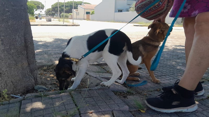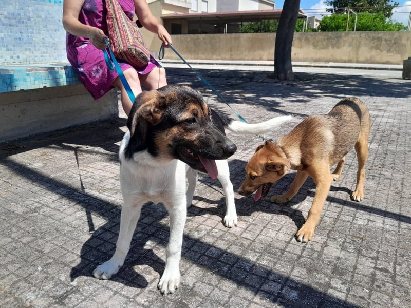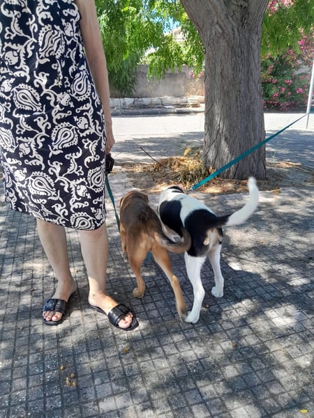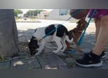 Mela hat bereits gelernt, an der Leine zu gehen und das große ‚Hunde-Außenklo zur Verrichtung ihrer großen und kleinen Notdurft zu nutzen.