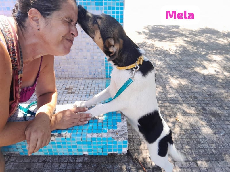 Mela ist ein munteres, geselliges, schutz- und zuwendungsbedürftiges kleines Mädchen, das pfotenringend darauf wartet, endlich ‚für‘s Lebensglück zu lernen’,- mittenmang ihrer Familie,- an der sicheren Seite ihrer Menschen und gern mit vierbeiniger Unterstützung.