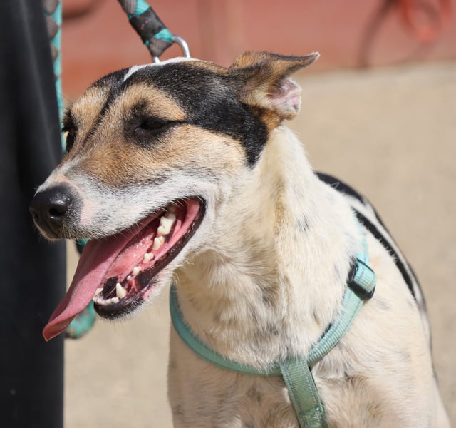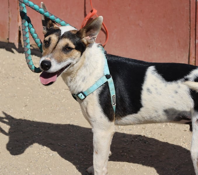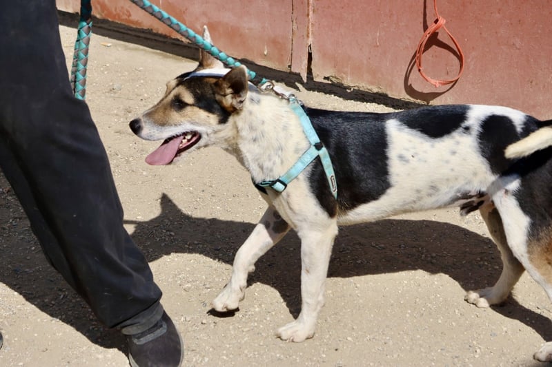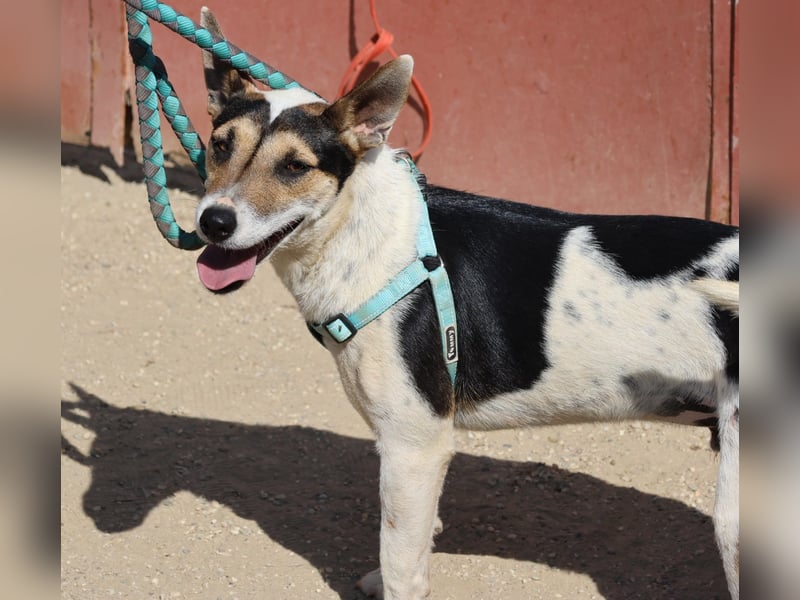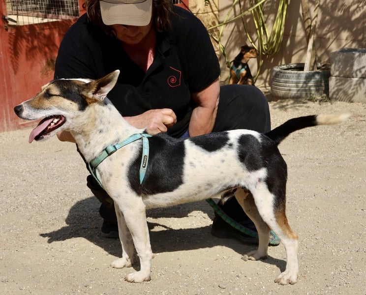 Paquito Mischling Rüde (4493), geboren am 06.03.2024, 42 cm hoch und 15 Kilo schwer.
