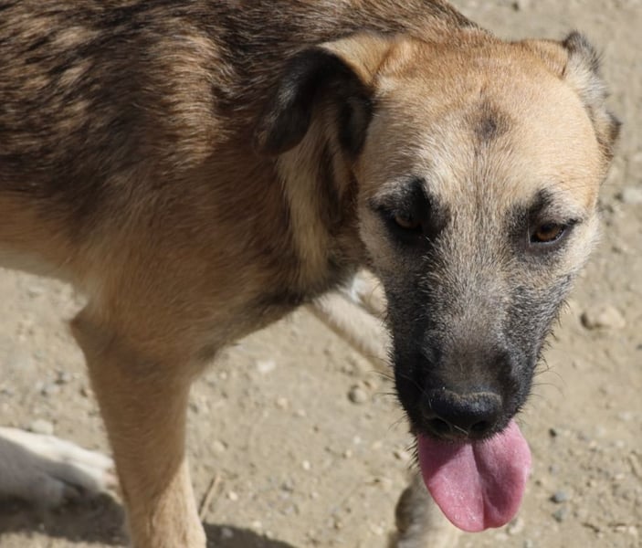 Nata (4080) Mischlings Mädel, geboren am 14.10.2021, hat eine Schulterhöhe von ca. 50 cm und wiegt etwa 17 kg.