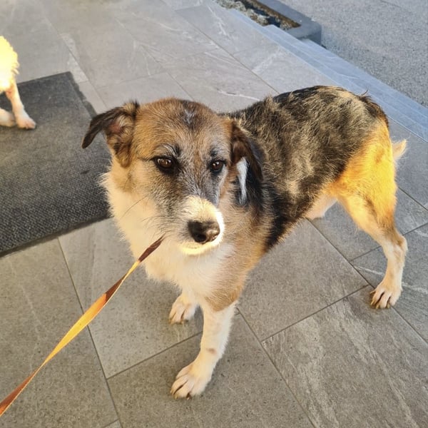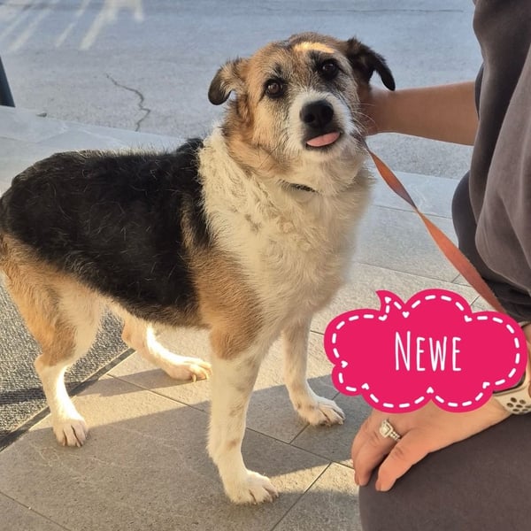 Newe ist ein Mädchen, laut Tierarztschätzung ca. 4 Jahre alt (geb. 14.02.2022.), sie ist 47 cm groß und wiegt 19 kg. Optisch wirkt sie wie ein Terrier-Mischling, jedoch zeigt sie keinerlei typische Terrier-Eigenschaften.