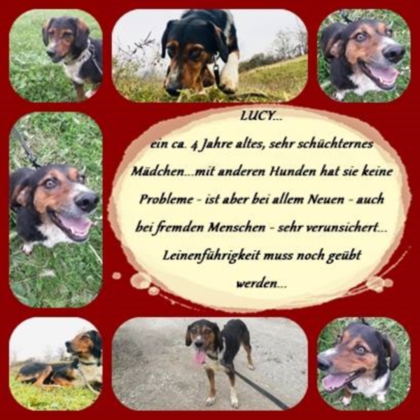 Ich bin ein etwas schüchternes Mädchen - die Lucy....ich werde so an die 4 Jahre geschätzt und ich dürfte ein Jagdhund sein - mit einer geschätzten Größe von ca. 50 cm.... Ich hatte ja das Glück, dass ich spazieren gehen durfte - wobei ich mir da ziemlich unsicher war.....mir haben die vielen Gerüche gefallen und neugierig wäre ich ja auch - aber da ich ja nicht viel von der Welt kenne, und das alles sehr neu für mich war, war ich doch etwas verängstigt....Da ich auch die Leine nicht kenne, hatte ich da auch so meine Probleme damit - aber ich hoffe, wenn ich öfters spazieren gehen darf, das ich mich an die Leine gewöhne - dann wird es bestimmt besser werden! Mit anderen Hunden habe ich keine Probleme....Allerdings bin ich bei allem Neuen - und auch bei fremden Menschen doch ziemlich verunsichert.....Aber vielleicht gibt es ja jemanden, der mir meine Unsicherheit nehmen möchte?? Hast Du Dich in mich verschaut? Dann schreib doch bitte an meine Pflegemamis, oder: [email protected] oder wende dich an die Seite : https://www.facebook.com/nirina.adoptions
