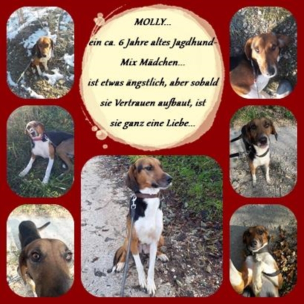 Soll ich mich wirklich trauen? Ich versuche es einmal - denn ich muss zugeben, dass ich eine sehr schüchterne und ängstliche Hündin bin... Mein Name ist Molly...ich bin ca. 6 Jahre alt und ein ca. 50 cm großer Jagdhundmix... Letztens durfte ich spazieren gehen....man wollte mir damit eine Freude machen...aber ich muss zugeben, ich bin mir nicht so sicher, ob es mir so gefallen hat...naja - eigentlich schon, wenn da nicht die Angst gewesen wäre....somit bin ich am Anfang nur gelegen und wollte nicht weiter gehen...nach einiger Zeit - also nach etlichen Streicheleinheiten und Leckerlies - versuchte ich es doch....aber ich war ganz vorsichtig unterwegs, denn schliesslich wusste ich nicht, was mich so erwartet....ich traf auch einige andere Hunde....und die sagten mir, ich brauche keine Angst haben, dann kann ich auch das spazieren gehen geniessen....dadurch wurde aber meine Angst auch nicht weniger...ich musste zuerst wieder gestreichelt werden, damit ich mich bissi entspannen konnte.... Naja - ich bin eben wirklich eine sehr ruhige, ängstliche, schüchterne Seele.... Wer will diesem süßen, schüchternen Mädchen zeigen, dass sie keine Angst haben braucht - wer gibt ihr genug Sicherheit und Aufmerksamkeit, dass sie mit der Zeit entspannter wird und auch Spaziergänge genießen kann??? Dann schreib doch bitte an meine Pflegemamis, oder: [email protected] oder wende dich an die Seite : https\://www.facebook.com/nirina.adoptions